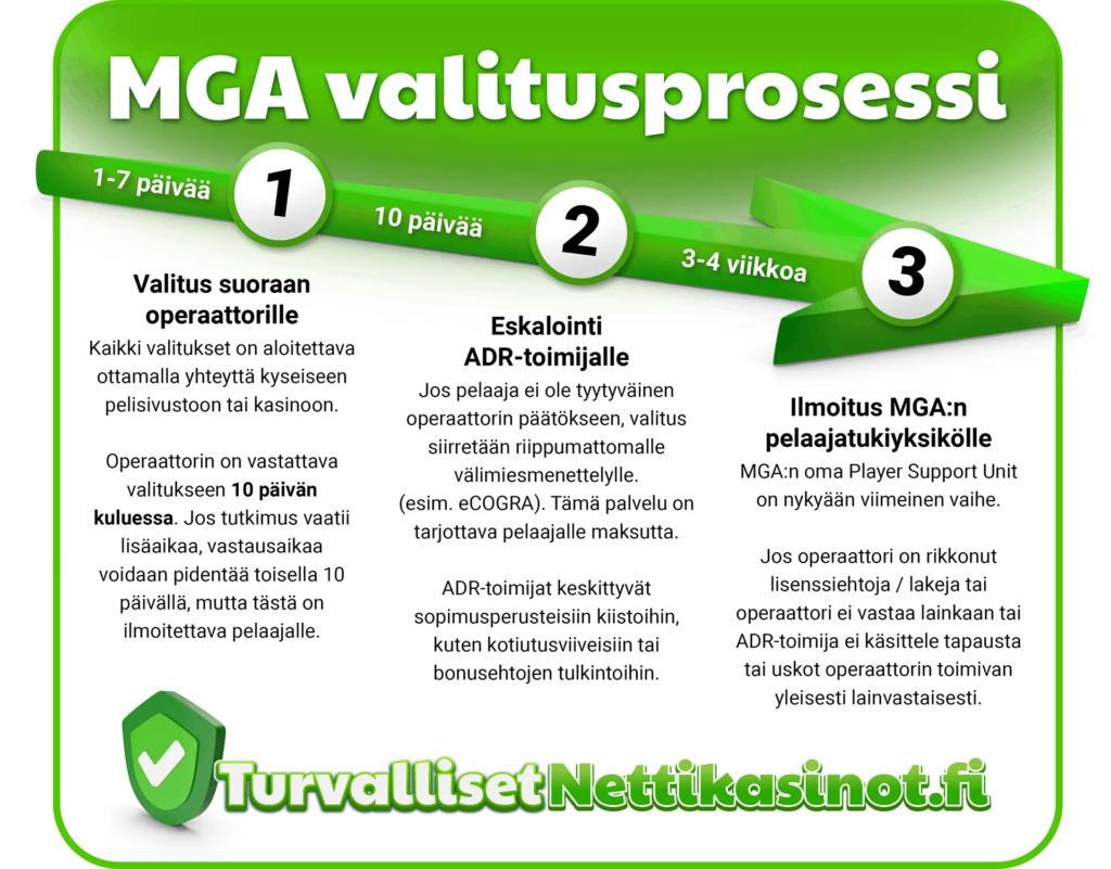 MGA käsittelee myös pelaajien valituksia, mutta prosessi voi olla hidas. Siksi lisenssi on hyvä turvallisuuden perusta, mutta kasinon luotettavuutta kannattaa arvioida myös muiden tekijöiden perusteella.